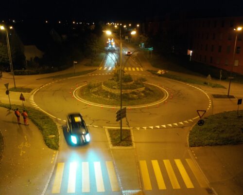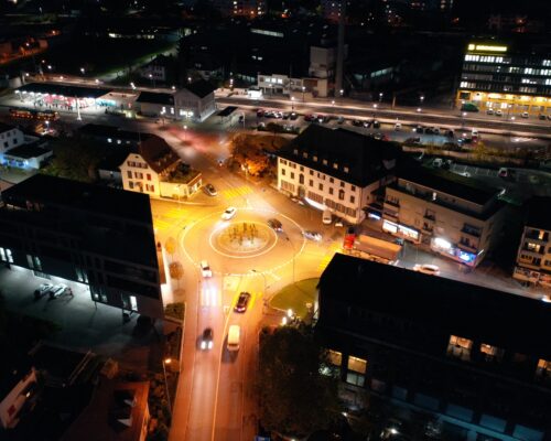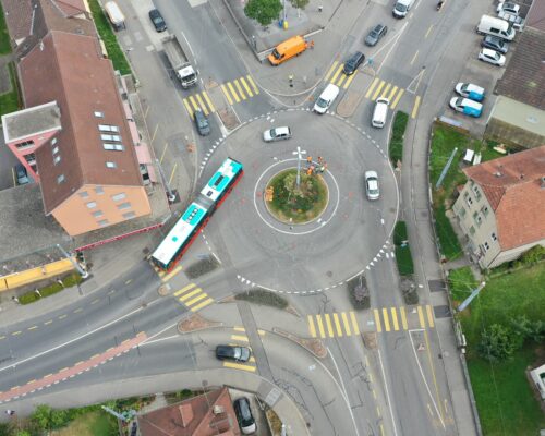 Drohnenaufnahmen zur Auswertung des Verkehrsverhaltens beim Kreisel Gais in Aarau.