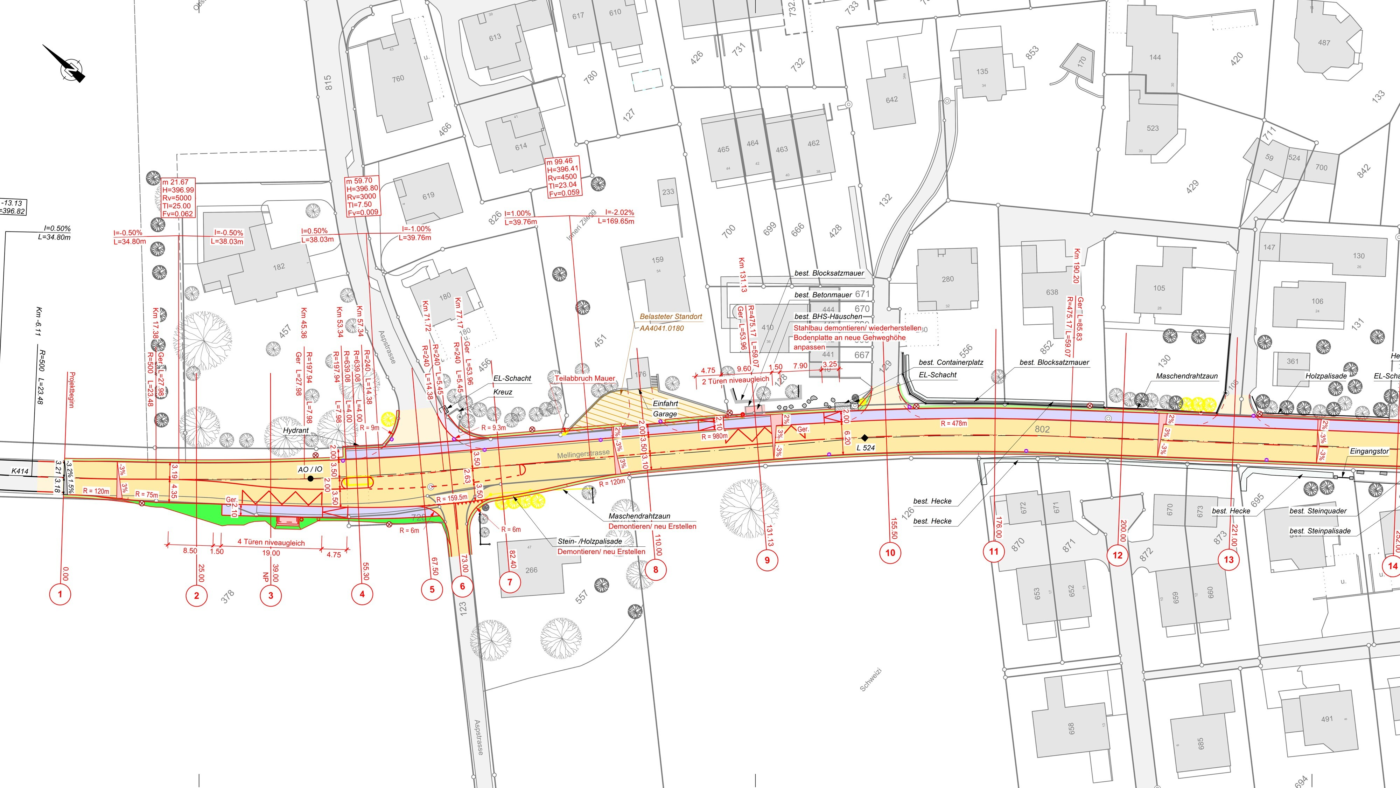 Das Hauptziel des vorliegenden Projektes liegt bei der Sanierung des stark strapazierten Strassenbelags und der Anpassung der Strassenentwässerung an die aktuell geltenden Normen. Zusätzlich sind zwei neue Querungshilfen und eine neue Gehwegverbindung zur Verbesserung der Sicherheit für den Langsamverkehr vorgesehen. Die beiden Bushaltestellen im Projektperimeter werden gemäss den Anforderungen an das Behindertengleichstellungsgesetz (BehiG) ausgebaut.