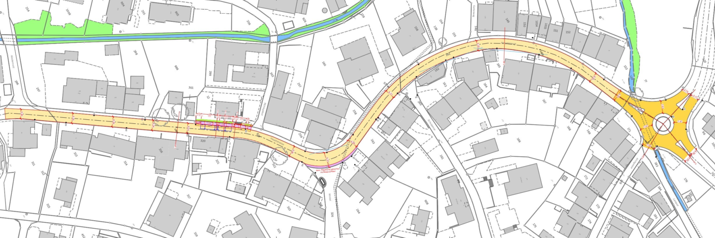 Im Bereich des Kreisels wird der Belag vollständig durch Walzasphalt ersetzt. Zudem werden die beiden Haltestellen Mitteldorf gemäss den Vorgaben des Behindertengleichstellungsgesetzes (BehiG) umgebaut. Innerhalb des Projektperimeters befinden sich zwei Bachdurchlässe: Der Durchlass im Mitteldorf ist in gutem Zustand, während der Durchlass am Kreisel erhebliche Schäden aufweist.